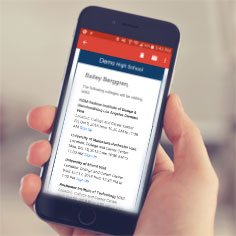 College visits are synced with Naivance or other calendar programs to allow students to sign-up for college visits.